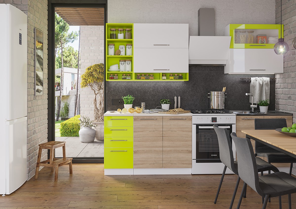Кухонный Гарнитур Софья 2000 мм Дуб Сонома/Белый + Лайм